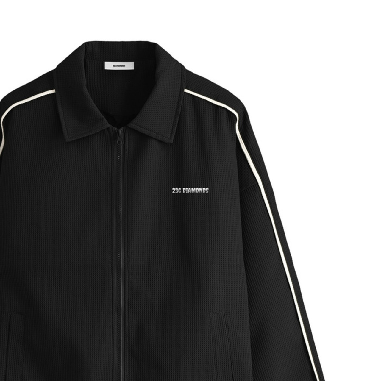 ワッフル調素材で作られた、快適なトラックジャージセットアップ。